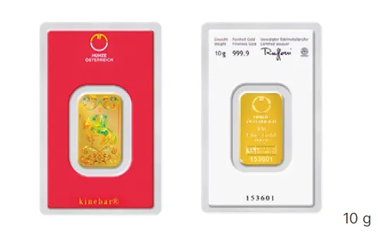 10g ingot of MÜNZE ÖSTERREICH: A beautiful gem or gift bearing a Lipizzan horse stamping. It is also a security element, i.e. a KINEBAR®.